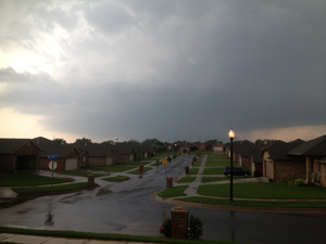 ![]() Incoming storm: This is the last thing I saw getting into the shelter, said University of Oklahoma dental student Chad Carter. I immediately sent it to my family saying, we will be hit. At this point the tornado was over the farms on the west side of 35. |